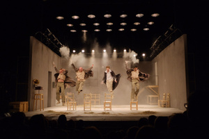 Вся интерактивность и атмосфера, все эти табуреты, зеленые туалеты, окутанные дымом, звонкий, безжалостный и беспощадный мат, спаривающиеся на экранах и испражняющиеся на сцене люди – все направлено на наше избавление от обывательской скверны, а если по-Чехову – на то, чтобы выдавить из нас раба капля за каплей, раба предрассудков.