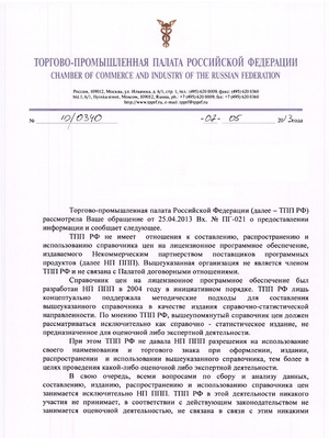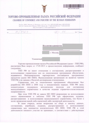 Официальный ответ ТПП РФ о незаконности справочника цен НП ППП