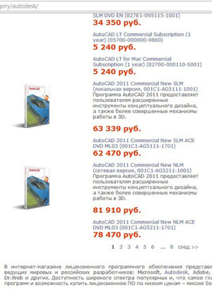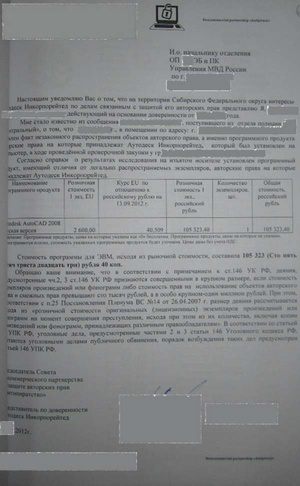 Вменяется парнишке по ст. 146 УК устаревший Автокад2008 — «правообладатель» с ненадлежащей доверенностью от Доннелла пишет офиц. письмо, что его цена 105 тыс руб (2600 евро из Справочника цен видать берет), однако в свободной продаже в розницу даже Автокад2011 стоит 63 тыс руб. Смотри ниже скриншот офиц. веб — магазина, справка в суд и в МВД от «правообладателя» с ненадлежащей доверенностью от Доннелла