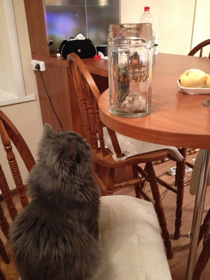 пока я клетки чистила - он телевизор кошачий смотрел)