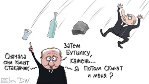 3. Президент РФ считает возможным наказание за брошенный в полицейских бумажный стаканчик. По мнению Путина, вслед за стаканчиком могут полететь и камни. Сергей Елкин продолжил логическую цепочку.