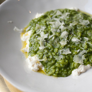 Зеленое ризотто (Remy Kitchen Bakery, шеф-повар Руслан Поляков) - нужно найти лук-шалот, тимьян, шпинат и сыр страчателла