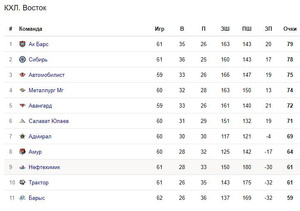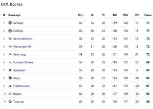 Ак Барс с Сибирью одинаковые очки (75 км) после вчерашнего игрового дня (ак барс победил барыс). По дополнительным критериям Ак Барс на первом месте. Сибирь - на втором.