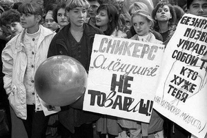 Демонстрация школьников и студентов против импортозамещения и в поддержку шоколада "Аленка", Кемерово 1995 год.