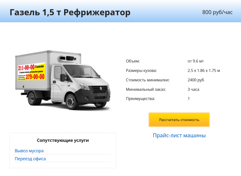 Рефрижератор – 24 руб/км, простой (погрузка/разгрузка) каждые 30 минут – 400 руб. (800 руб/час)