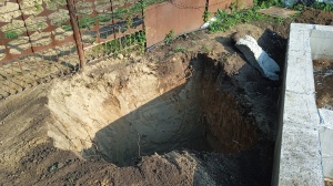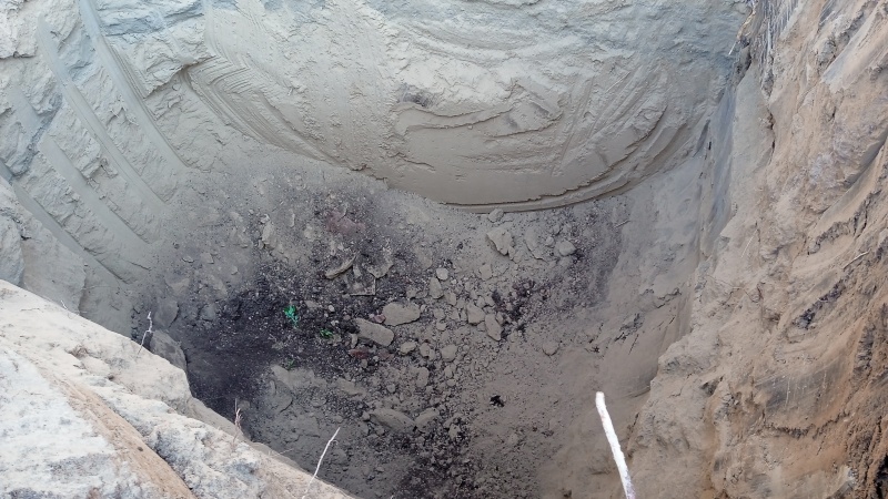 Яму точно не лопатой копали. Экскаватором?