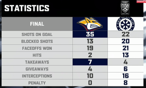 Металлург- Сибирь. Первый период закончился. По занавес хозяева еще забили. Счёт 2:0