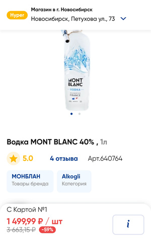 продают французкий Монблан по цене Русского стандарта. Если хочется выпендриться, то недорого выйдет.6 штук в наличии.