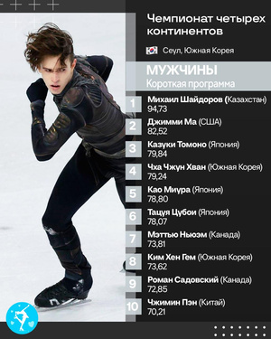 Казахстанец Михаил Шайдоров – лучший у мужчин после короткой на ЧЧК. Джимми Ма – второй, Казуки Томоно – третий