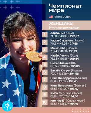 Алиса Лью стала первой чемпионкой мира из США за 19 лет. Сумма её баллов 222.97