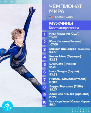 Илья Малинин (США) с личным рекордом 110.41 лидирует после короткой программы на ЧМ-2025