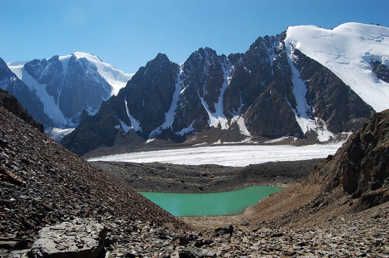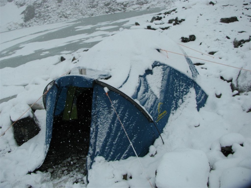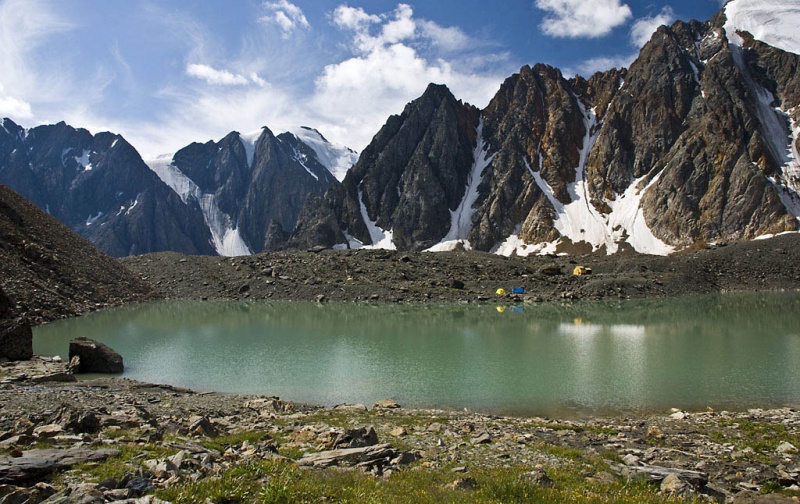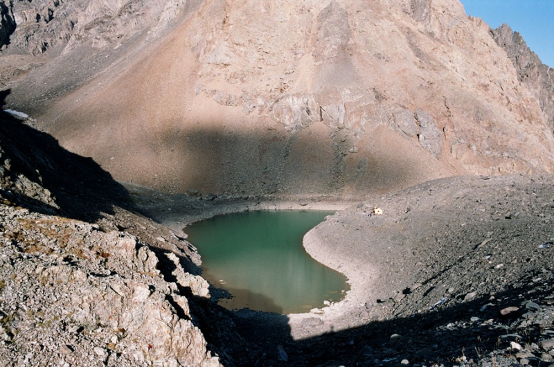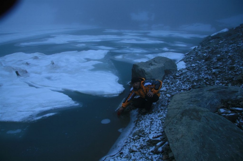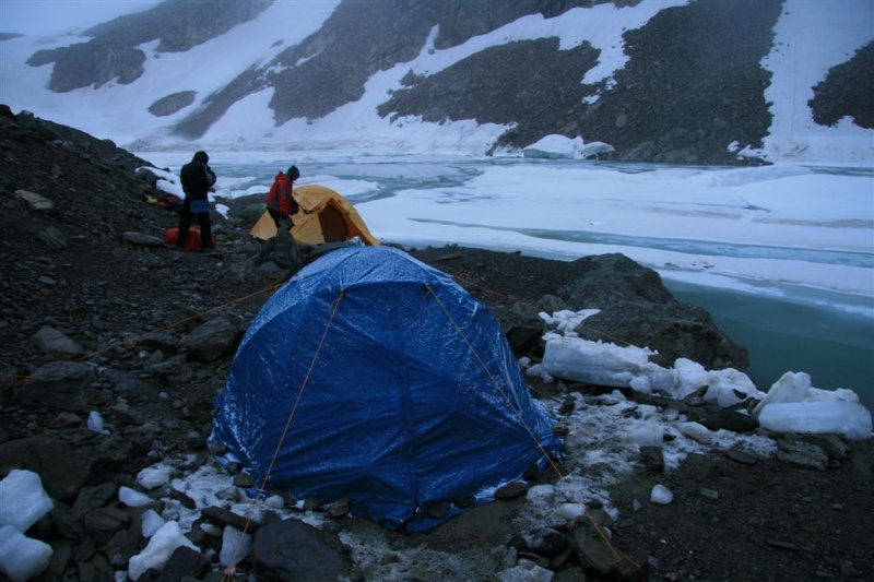 В прошлом году мы там с неделю жили, начиная с 25 июня. Ходили на Кызылташ, Актру, Стажеров. Снег никуда не уходил, а в ночь на 30 вода ушла сантиметров на 20, было около - 10 и озеро замерзло, утром чтобы воды набрать приходилось разбивать достаточно крепкую корку льда. Ну и снег шел практически каждую ночь.Конец июня, еще снег и лед по утрам.Значит лед еще в июне и даже июле может лежать. :(