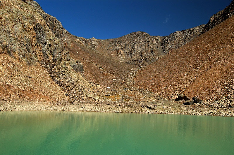 А я слышал распространенную версию о том, что после землетрясения 2003 года озеро позеленело. Источник не припомню, но кто то с альплагеря