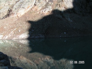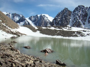 Я уверен, в тот день Голубое озеро было затянуто льдом (пусть даже тонким) полностью.Голубое озеро меньше ортолыкского по площади и объему и общая теплоемкость его намного меньше, озёра находятся на одной высоте, рядом с Голубым еще здоровенный холодильник в виде ледника Большой Актру.