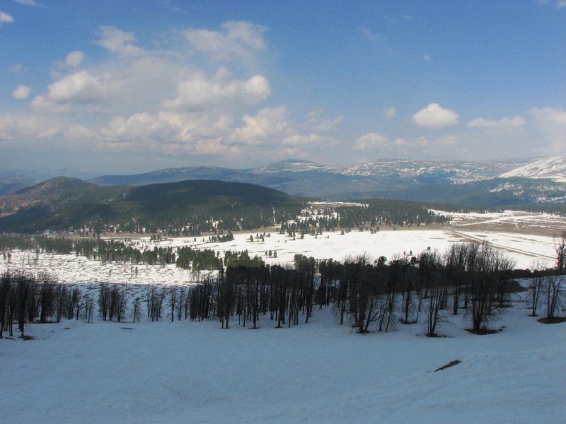 Вот фото 2 мая 2010. Снято с горнолыжной трассы вниз на перевал.Судя по погоде, в этом году такого не будет