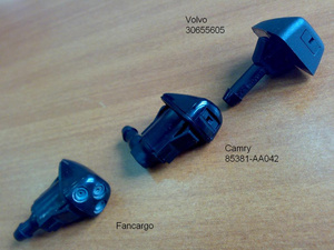 Сегодня сравнил форсунку от вольво и от камри, у камри есть встроенный обратный клапан, внешне смотрится лучше, встаёт в капот как родная, подвод трубочки загнутый (у вольво есть оба варианта), вроде даже распыляет равномернее и интенсивнее, но сектор намного уже чем на вольвоской форсунке. Мне высота распыла больше подходит у форсунки от камри, но оставлю всё равно от вольво, дополнительный обратный клапан уже сделал, да и высоту распыла поправить не сложно проставочной резиночкой.