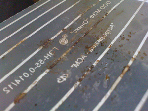 вот как окислился нагревательный элемент. подозреваю что это произошло от попадания влагиА ты с самого начала разве не на скотч клеил обогревайку к зеркалу ? Мой позапрошлогодний топ где-то был, я об этой проблеме внимательного читателя предупреждал.