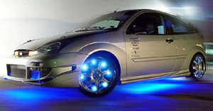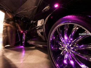 кстати, то, что светится внутри диска - скорее всего лента, наклееная по кругу на край кожуха ступицы - деталь неподвижная, питание подвести - не проблема, даже на поворотные колеса - гибкий кабель и тщательное крепление его поверху рычага...ну а под днищем уж кабель прячется так же, как и при обычной подсветке днища. на мое имхо - бесполезная трата сил и времени...
