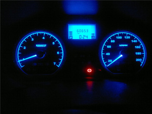 На Пассате синенькая вполне радовала глаз, даже не убавлял яркость. Но там без фанатизма - цвет достаточно мягкий.