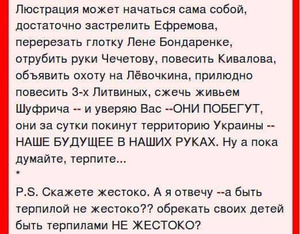 "УЖЕ СТОЛЬКО ДЕРЬМА НА РОССИЮ ВЫЛИЛИ, ЧТО Я ПРЯМО МЕЧТАЮ О ТОМ, ЧТОБ ОККУПАНТ ПУТИН РЕАЛЬНО ВВЕЛ ВОЙСКА И ВМАЙДАНИЛ ОТ ДУШИ ПО ВСЕЙ ЭТОЙ ФАШИСТВУЮЩЕЙ МРАЗИ! ТАК ВМАЙДАНИЛ,ЧТОБЫ БЕЖАЛИ ДО ПОЛЬСКОЙ ГРАНИЦЫ И СРАЛИ НА ХОДУ! ЧТОБЫ ВЫ НАКОНЕЦ УВИДЕЛИ, ЧТО НА САМОМ ДЕЛЕ ЗНАЧАТ СЛОВА - РОССИЯ ВВЕЛА ВОЙСКА!!!!!" (с)